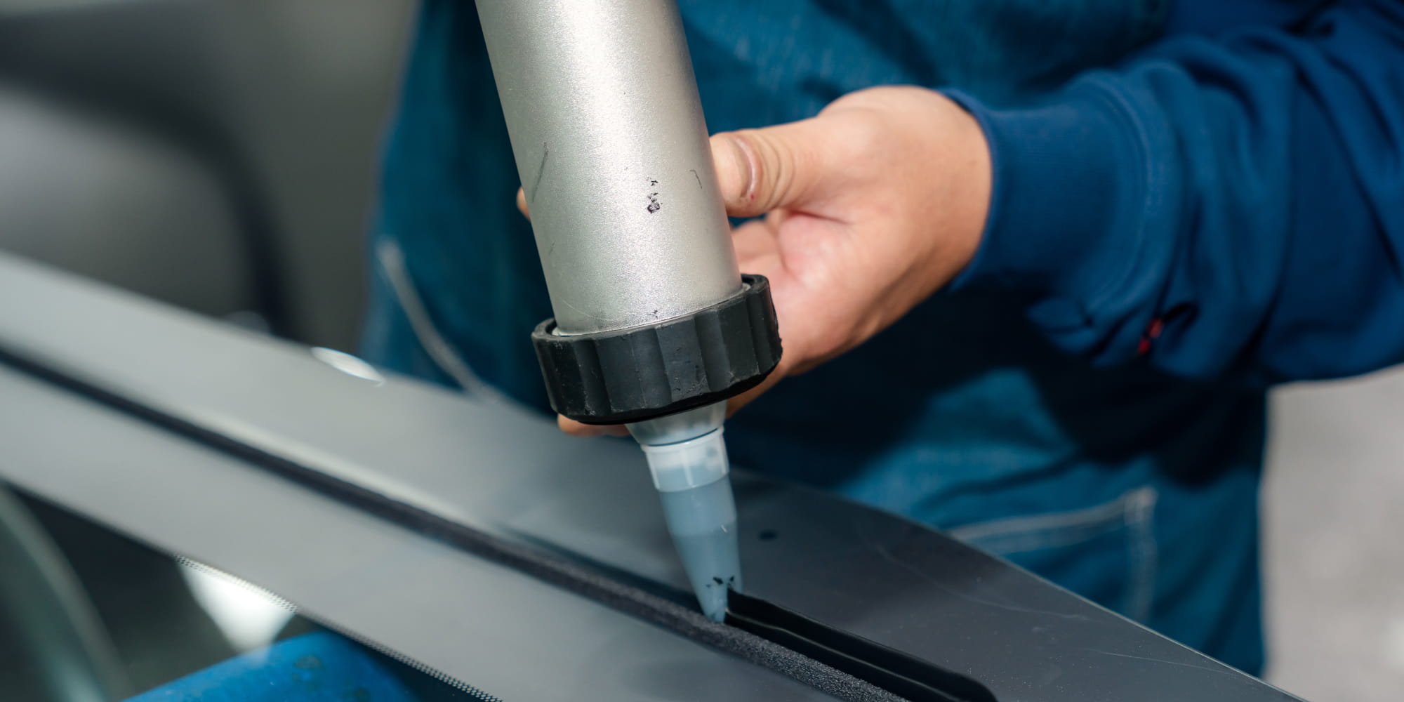 新しく取りつけるガラスに専用の接着剤を塗布します。